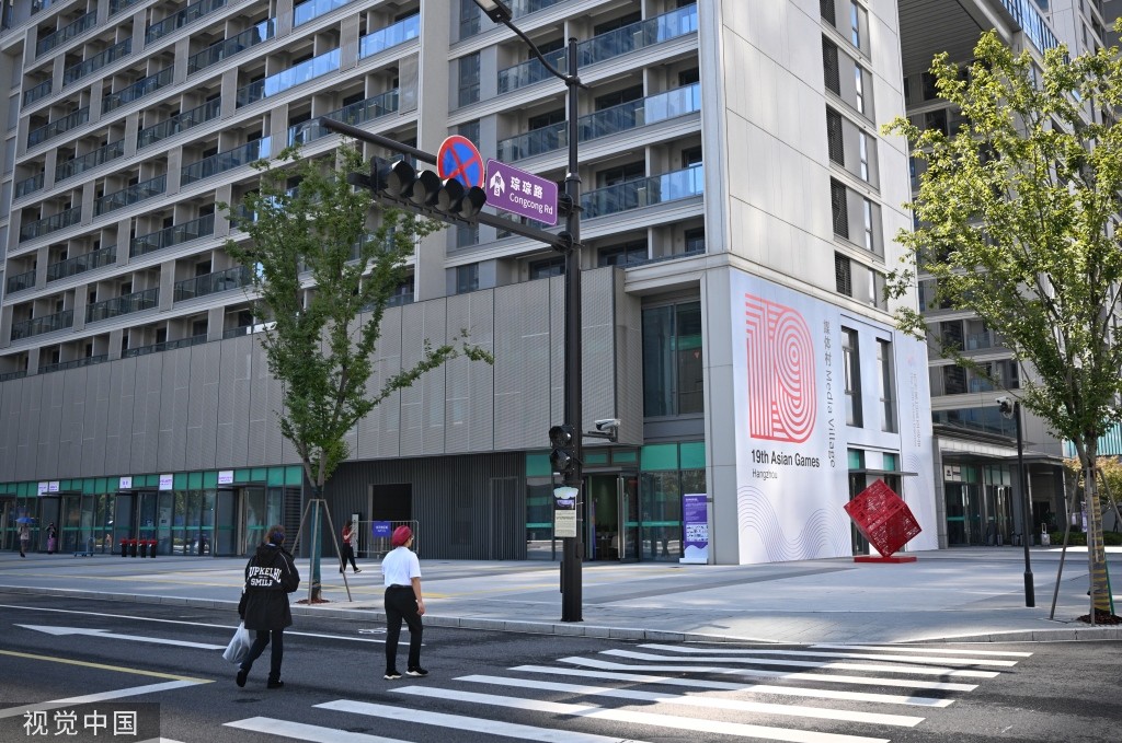 2023年9月16日,杭州亚运村正式开村,该村内部多条道路以杭州亚运会元素命名,成为别样街景。 中新社记者 王刚 摄