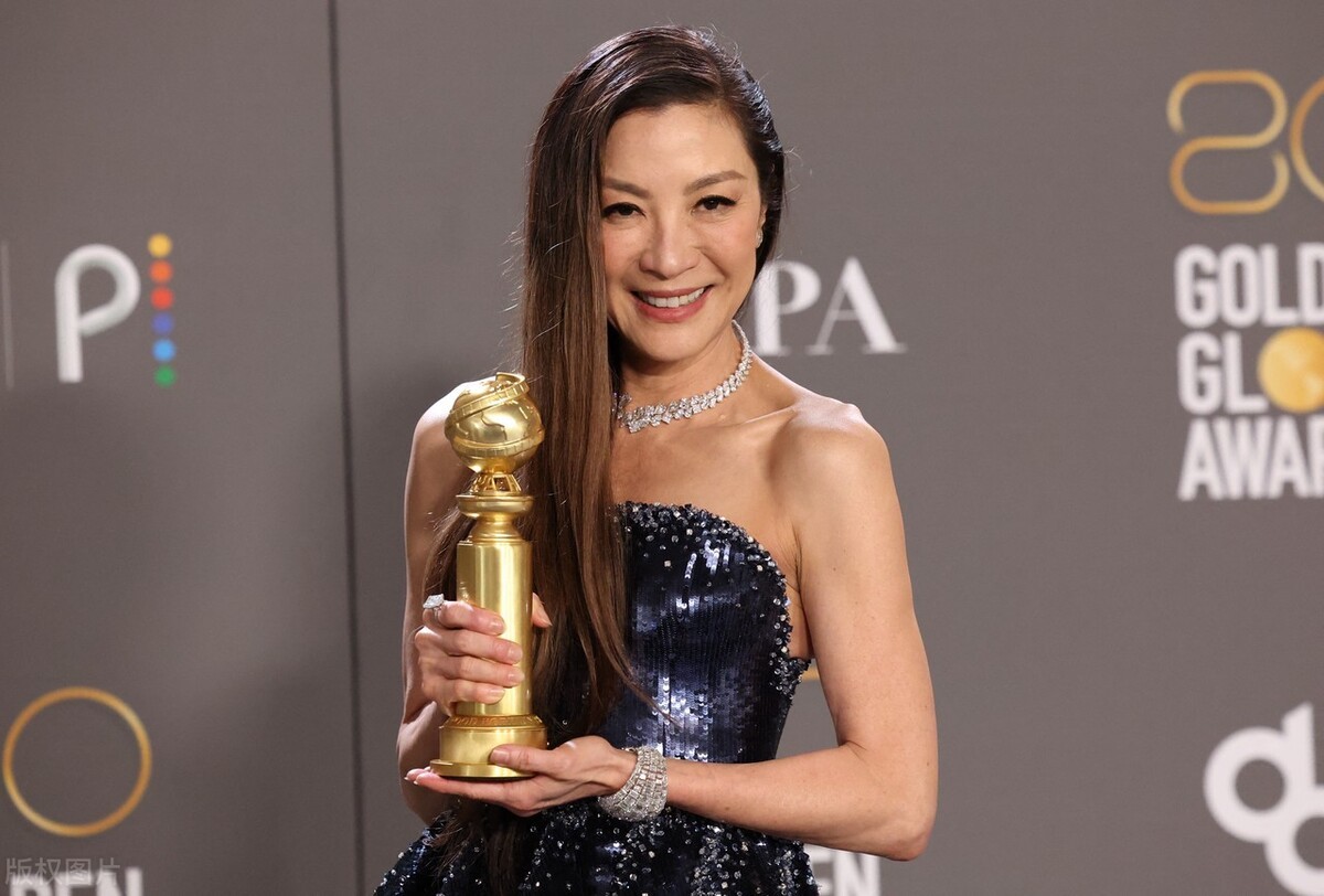 美国洛杉矶,2023.1.10,杨紫琼(Michelle Yeoh),《瞬息全宇宙》,获第80届金球奖音乐喜剧类电影最佳女主角