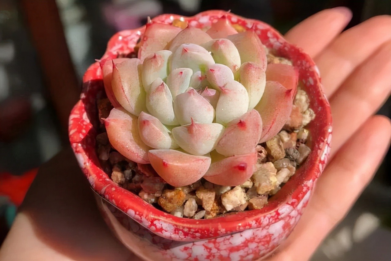 阿尔巴佳人也叫如梦令、西施,是我非常喜欢的一款月影系多肉,虽然个头不大,但是叶片肥厚饱满、光泽性强,看起来非常精致。出状态的时候,阿尔巴佳人也可以呈现出果冻色,而且养护起来真的很容易,是一款人气极高的多肉。