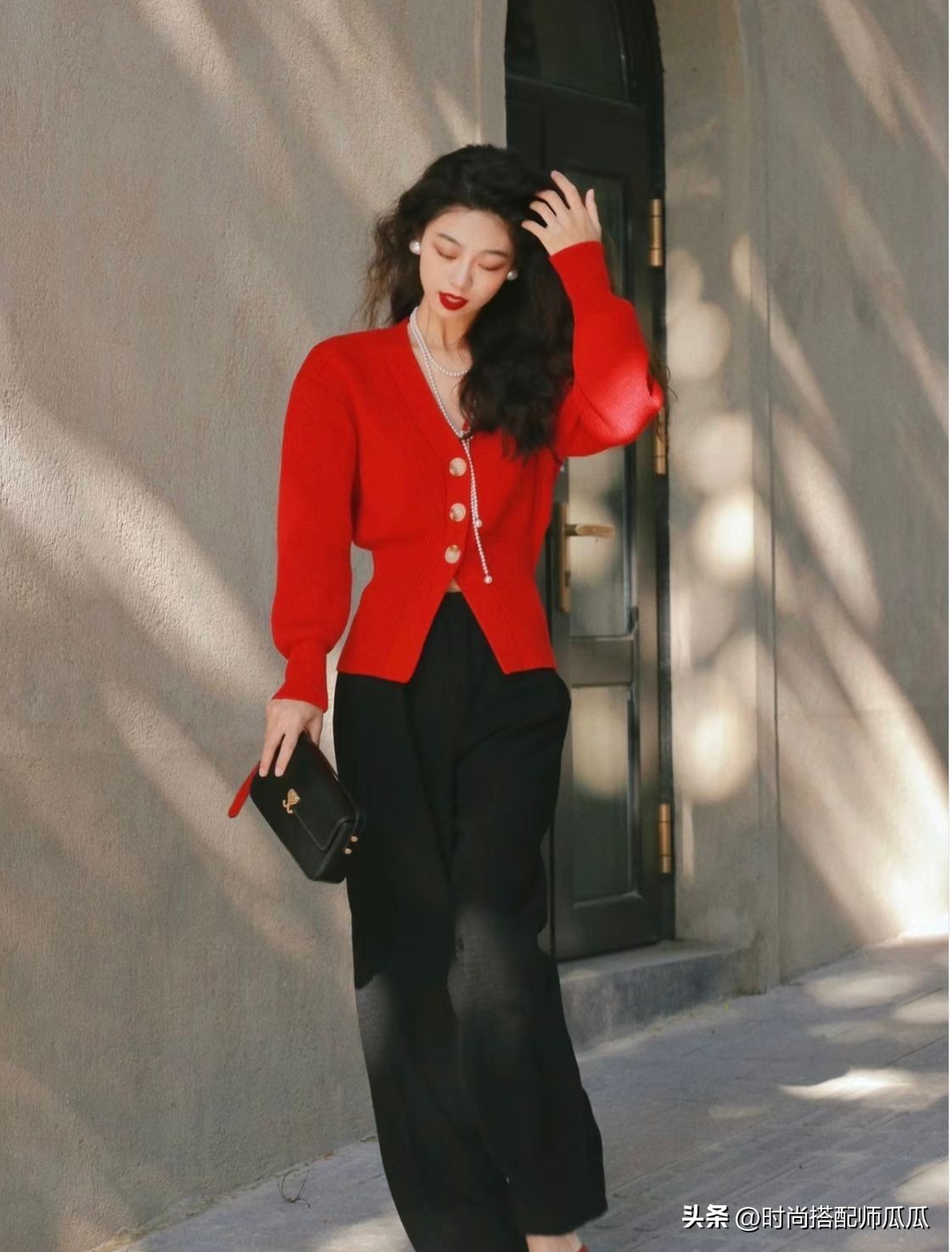 深红色这一款颜色它是绝对是属于极为显白而且从视觉上而言很吸睛的存在了,对于每一位黑黄皮的女性而言真的可以是当做能够衬托绝对的视觉气质,又显白的优选搭配。也建议各位版型的状态还是要将线条比较明朗一些,并且设计感较为简约的系列搭配更衬托气质。