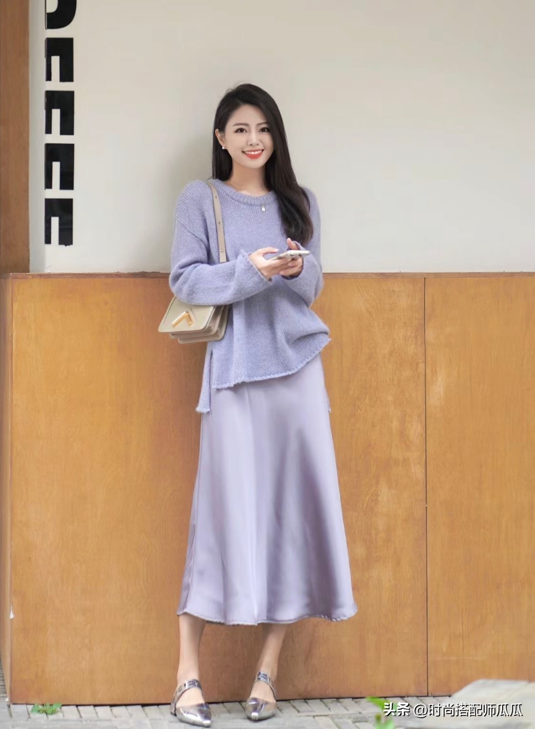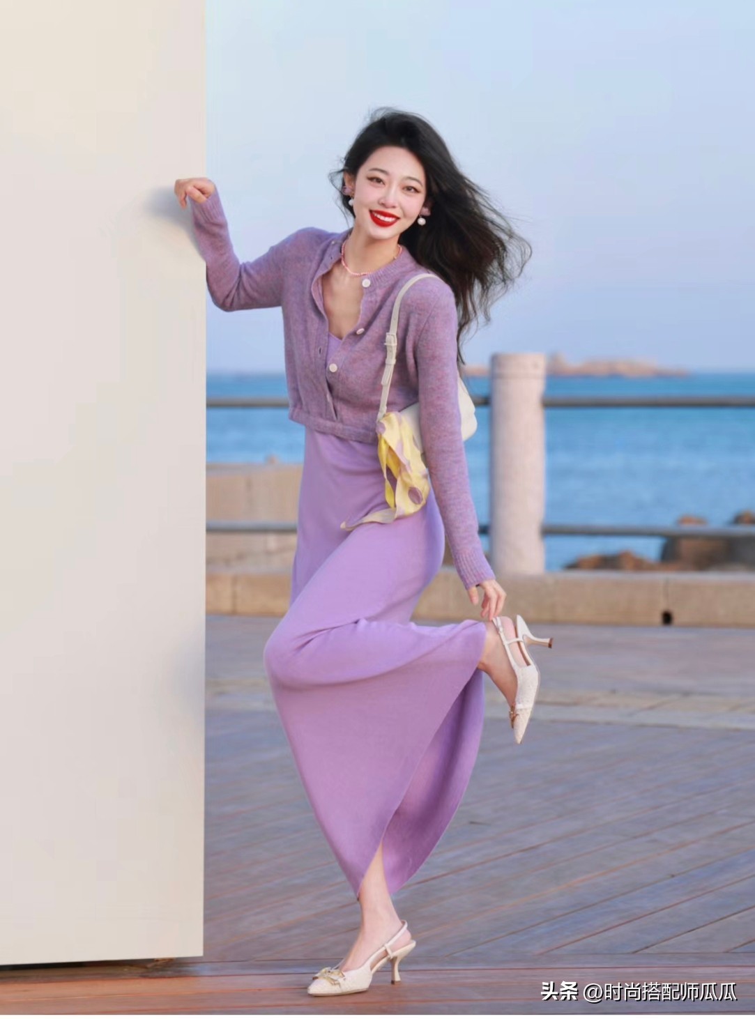 单品的类别还是要推荐大家直接拒绝掉休闲感比较强烈的单品,可以优先于选择将极具简约和优雅感的长裙系列来进行搭配,尤其是对于二三十岁这个年龄阶段的女性而言,香芋紫他所衬托出来的优雅感和轻熟以及温柔感是最为明显的了。