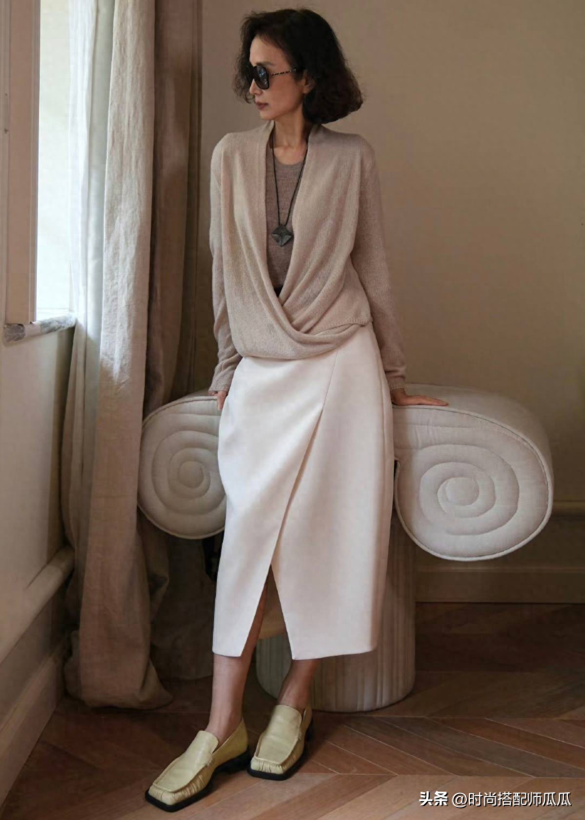 中性色系列的颜色搭配它本身的质感会比较的凸显,但又是属于非常基础百搭不挑人的系列,所以也建议大家尽量可以将其穿的更加的具有高级感,那么在版型的优选上就可以将线条比较流畅,并且设计比较简约大气的类型进行优选搭配,尤其是在中年阶段的时候。