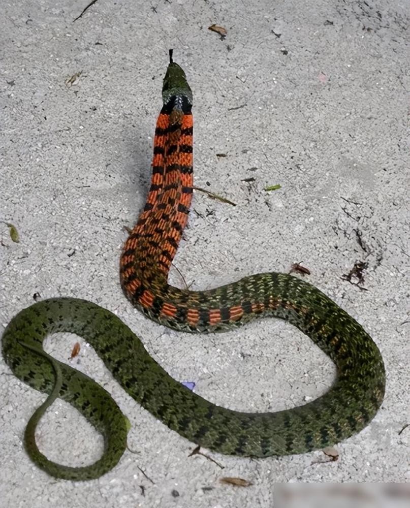 在了解这条被重庆男子拍摄的视频后,我们发现很快就会得出答案,因为视频中的主角实际上并不是大家口中所称谓的“鸡冠蛇”,它其实是虎斑颈槽蛇。