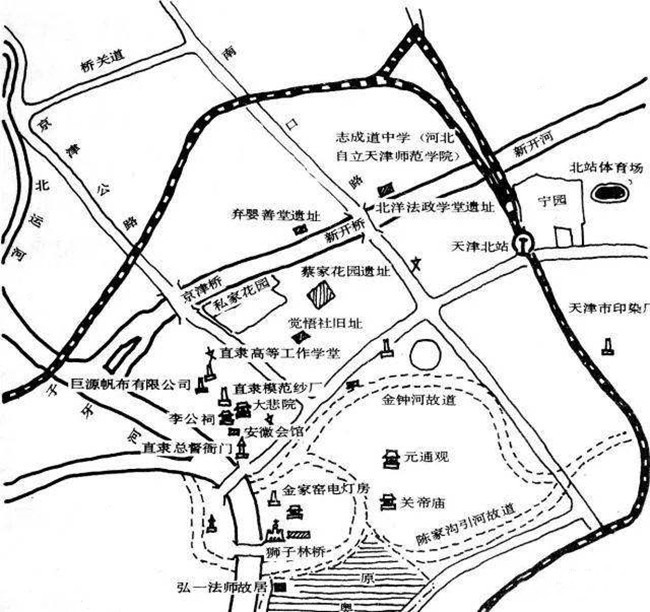 1903年2月,袁世凯批准了工程总局制定的《开发河北新市场章程十三条》,这一章程确定了河北新区的范围:东沿京奉铁路,西至北运河,南起金钟河,北抵新开河。1903年(清光绪29年)正月初二新开河火车站落成(后改为天津总站,今天津北站)。同年,又修通了一条长1.5公里,宽24米连通总督衙门和火车站的大马路——大经路(1946年,为纪念孙中山先生,大经路更名为中山路)。与此同时,为打通大经路与海河对岸联系,在原窑洼木浮桥处建造了一座双叶承梁式钢架桥——金钢桥(1924年建新桥,后拆除。1996年建成现桥)。