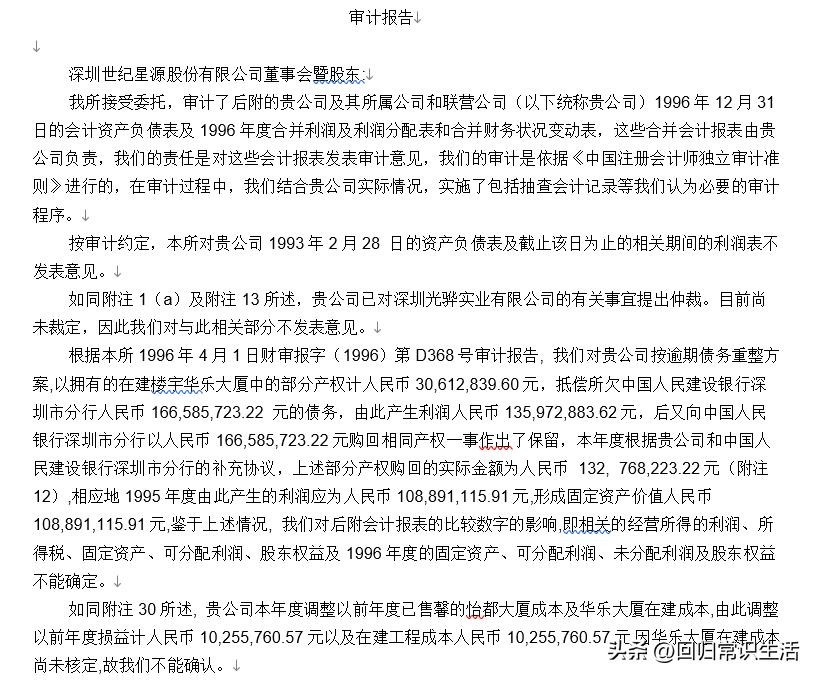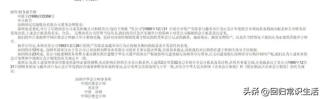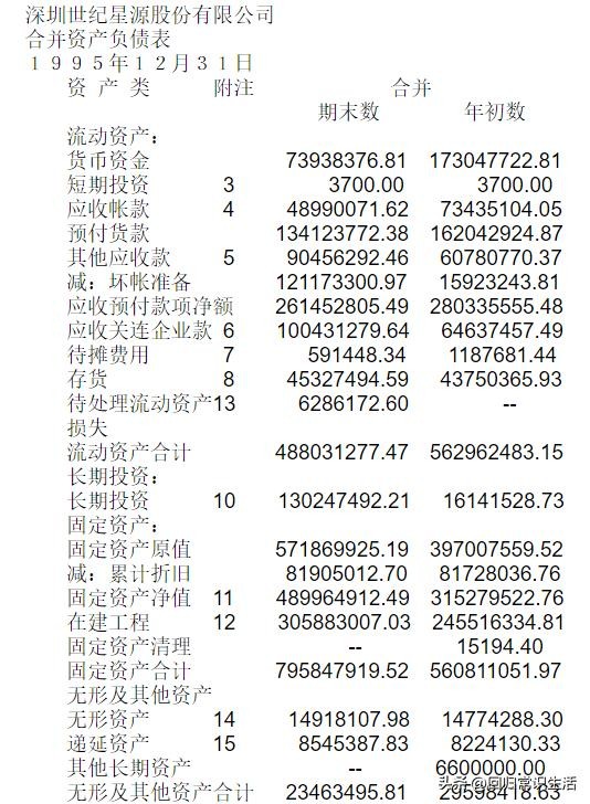 我问了百度,知道这家公司叫做世纪星源。现在还在,是ST星源。这个案例发生在1995年。涉及了1995年的财务报表和1996年的2张报表。