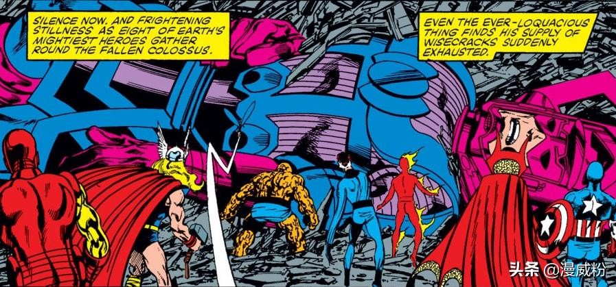 趁这个机会,超级英雄们才击倒了行星吞噬者。