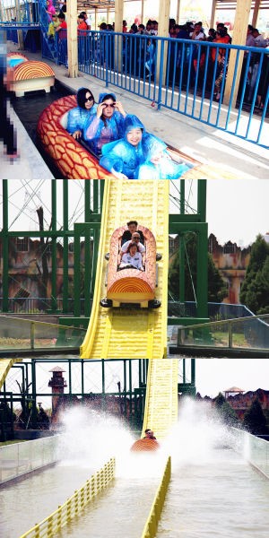 在整个激流勇进项目中,最精彩刺激的部分必然当属急速下滑了,船只从高处滑下,冲入水中,溅起水花。你可以体验到一定程度的失重,并且会在坡地的水池中被自己溅起的水花淋湿。不过别担心,这个项目园区为你贴心准备了小雨衣。这个项目也是山西省内唯一的双提升双冲刺的激流勇进项目,第一坡高度10m,第二坡高度13米,炎炎夏日为你送上一丝清凉,不玩不行啊。