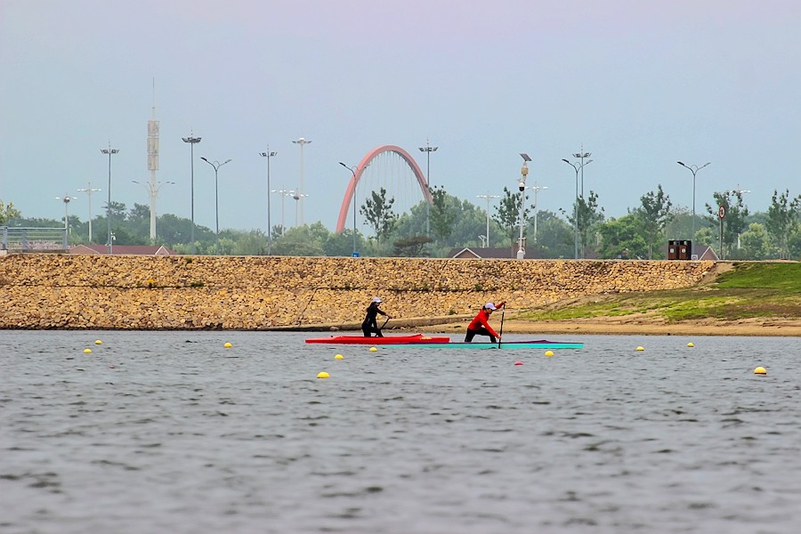 在同一片水域,我们幸运地看到了中国皮划艇队的运动员正在日照水上训练基地训练,备战东京奥运会。