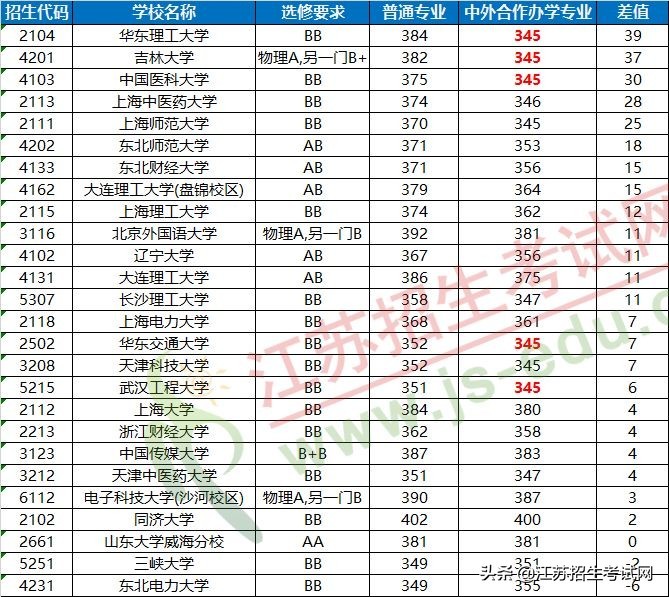 4、华东理工大学和吉林大学普通类专业分数在380分以上,但去年中外合作办学专业却出现“断档”的情况,压线即可考入,这真的算是“捡漏”了。
