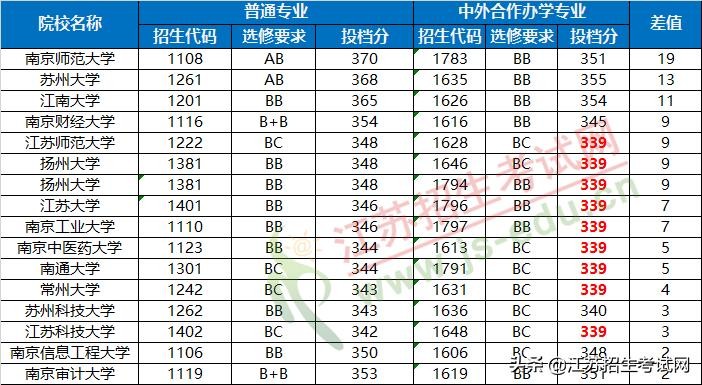 1、省内学校和省外不同,一是中外合作办学专业和普通类专业招生代码不同,二是两类专业的选修要求不完全相同,部分学校中外合作办学专业的选修要求要低一些,比如南理工和南航普通类专业要求物理A,另一门B,而中外合作办学专业要求双B。