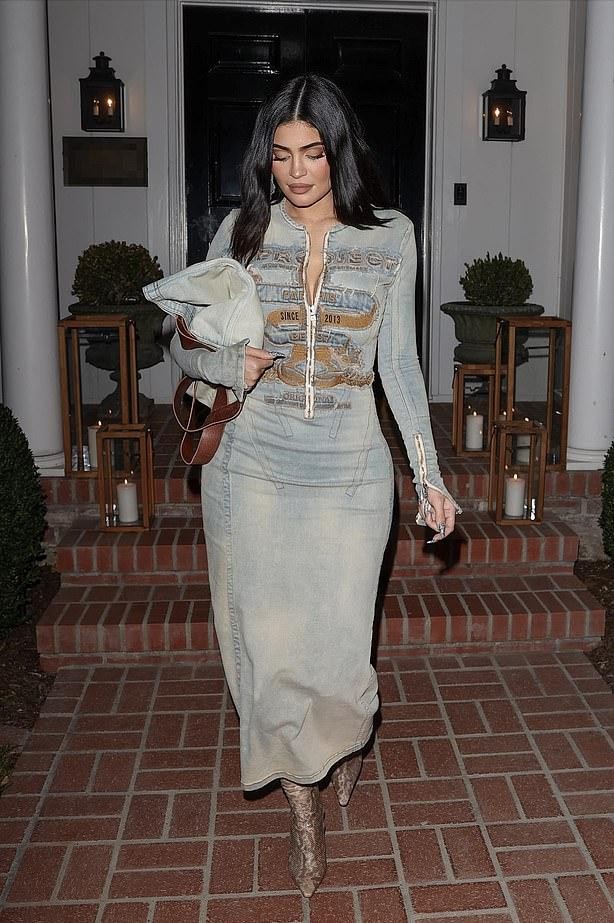 金小妹生了二胎后的身材还算是恢复得比较好,复古牛仔裹身裙,加上蛇皮纹的靴子,虽然不是很贴身的风格,却也是性感十足。