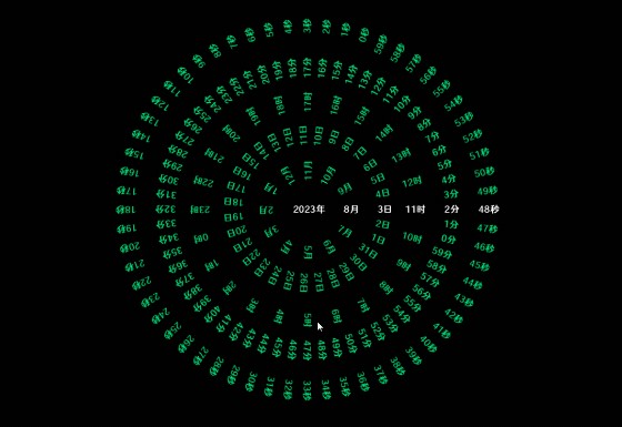 10、彩色转圈时钟屏保效果,秒针虚拟成转圈的彩色条状,看你能找到哪个是0秒的颜色;