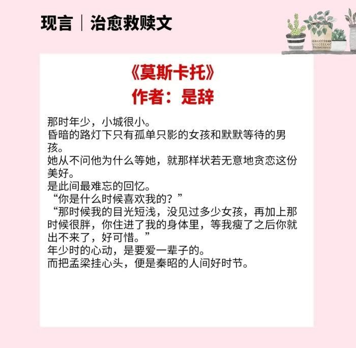 以上就是4本治愈救赎文的全部内容,喜欢这种类型的小仙女记得点赞和收藏啦,我们下期再见哟~