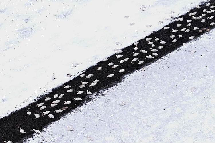 2022年2月16日,山东垦利区黄河口镇黄河主河道。黄河口被誉为鸟类迁徙的“国际机场”。东方白鹳是国家一级保护动物,自2003年首次在黄河口自然保护区湿地内废弃电线塔上繁殖以来,已连续20年在黄河口野外自然繁殖,累计繁育2748只,东营是全球最大的东方白鹳自然繁殖地。胡友文 摄