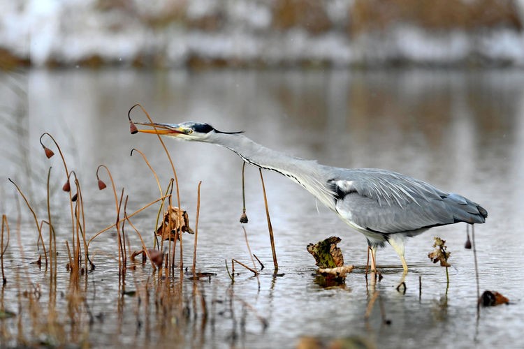 2020年11月30日,山东威海环翠区里口山,苍鹭冰天雪地寻找食物。宋林继 摄