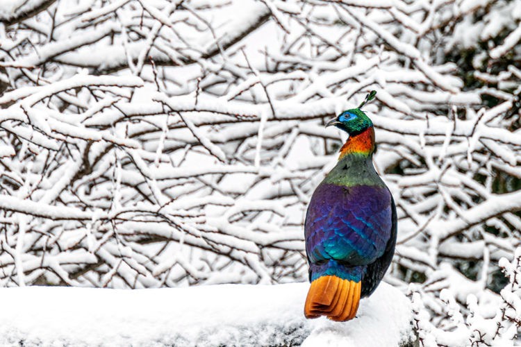 2019年3月31日,西藏山南市海拔4019米的卡久寺,一只棕尾虹雉矗立在冰天雪地的森林中。宋林继 摄