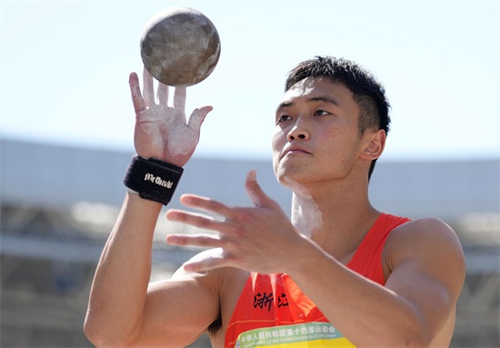 浙江队选手华梓惠在铅球比赛中(9月20日摄)。