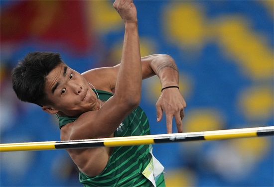 江苏队选手孙启豪在跳高比赛中(9月20日摄)。