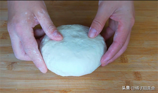 2、然后再来说一下面团,面团放的是中筋面粉300克,温水160ml,把它和成面团,刚揉好的面团是不光滑的,可以饧面10分钟之后再揉,就会很光滑很细腻。