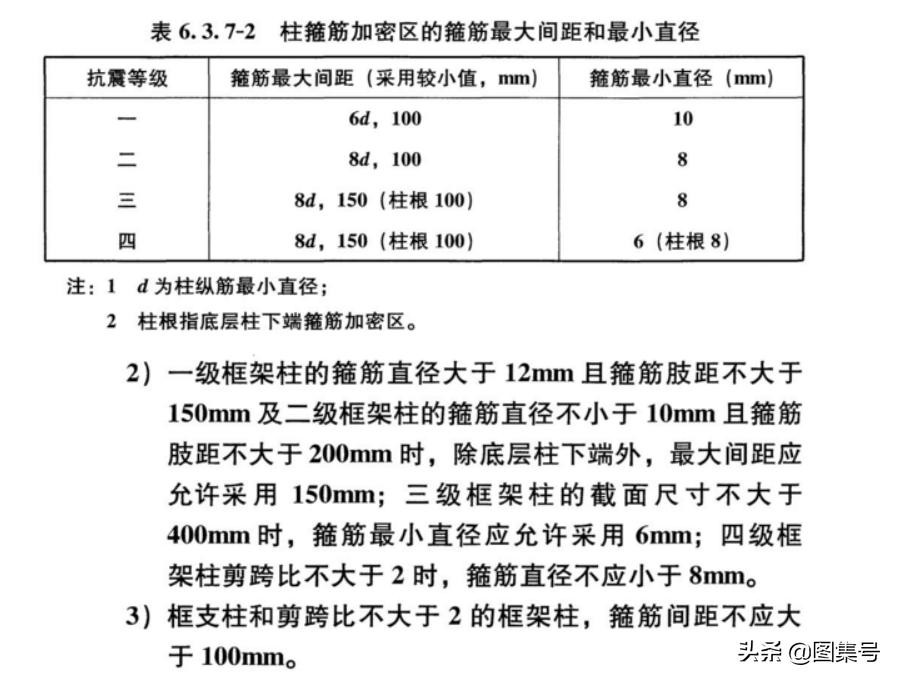 柱子加密区箍筋的最大配筋间距和最小距离