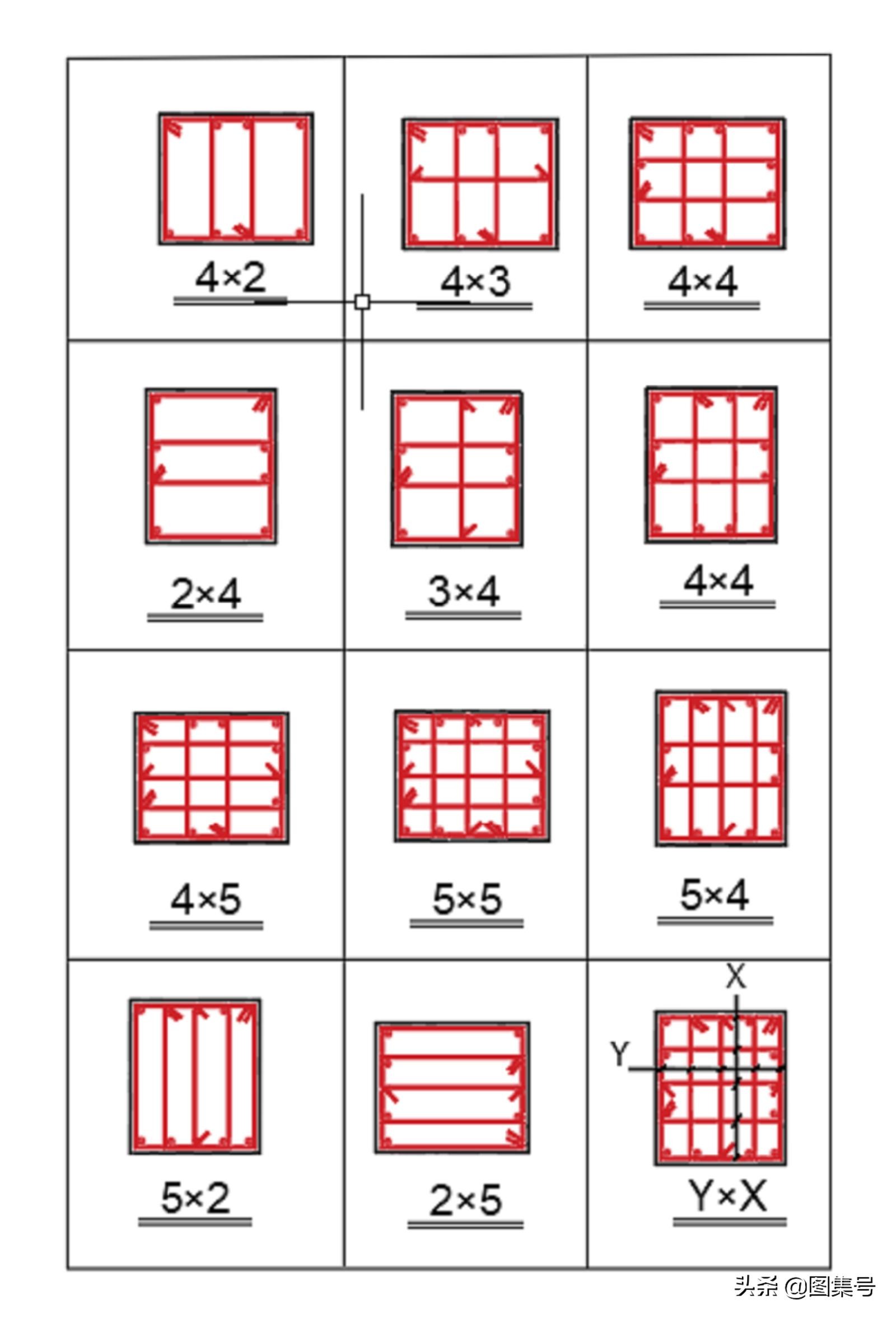 矩形箍筋复合形式较多,分为Y×X种,对于小白很难区分出几只箍×几只箍,那么我们如何区分呢?看一下我下面做的汇总。