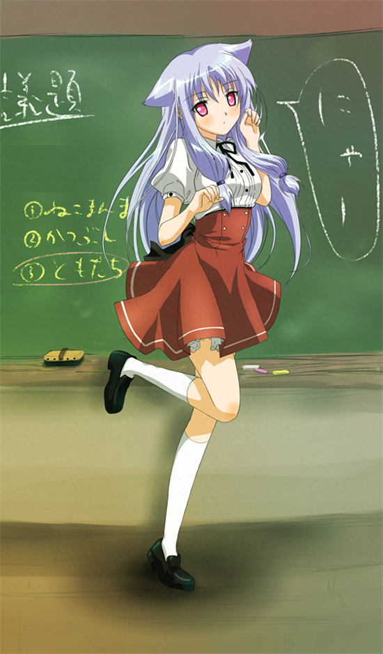 平时是性格认真老实的班长酱,可是内心附着猫妖怪,附体的时候头发会变成白色,性情大变,感觉坏坏的,身材依然保持绝佳的丰满。