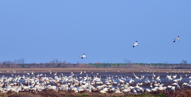 鄱阳湖是一个富饶的生态系统,拥有多种湿地类型,包括湖泊、河流、沼泽和滩涂等。这里生长着丰富的水生植物和鱼类资源,是众多珍稀物种的栖息地。鄱阳湖还是全球重要的鸟类迁徙路线之一,每年吸引数百万只鸟类在此停留和繁殖。