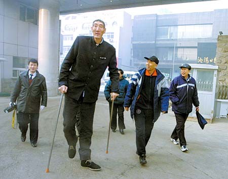 来自内蒙古的巨人鲍喜顺身高2.36米,比姚明还要高10厘米。