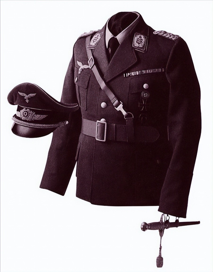1935式空军上衣和军帽。日常情况下,1937式空军军官佩剑系在武装带上。