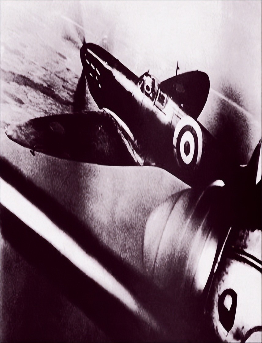 从德国轰炸机上拍摄的照片——一架“喷火式战机”从旁边一掠而过。