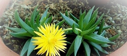 叶片细长,肥厚多汁,呈浓绿色。夏季开金黄色花朵,非常夺目。