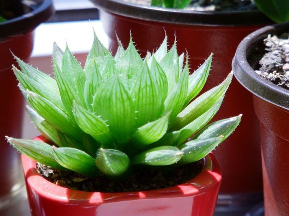 叶似纺锤非常可爱,是少有的叶片带纹路的多肉植物。