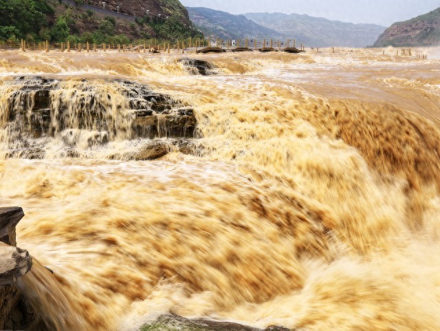 其实黄河的上游部分是很清澈的,而我们平时看到的都是黄河的中下游。在甘肃洮河进入黄河的交汇处,我们还能看到“半江碧水半江混”的奇特景观。因为中游流过黄土高原,河水颜色就变得越来越黄。
