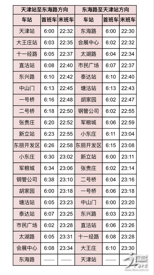 津滨轻轨9号线12月31日恢复全线运营:奉上各站首末班车时刻表