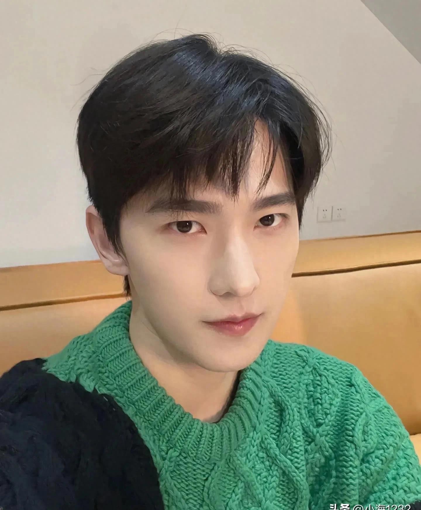 - 黄冠亨绿色毛衣清新文艺少年感满屏,刘海遮眼难盖帅气