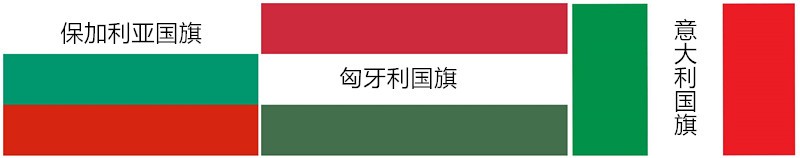 保加利亚、匈牙利、意大利国旗