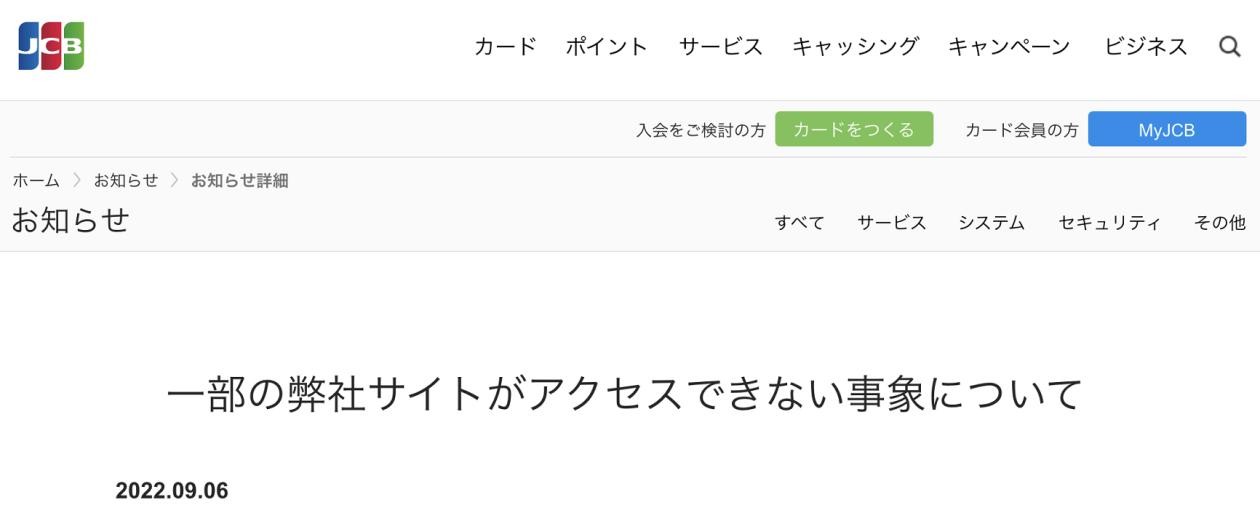 JCB 6日发布消息称,该公司部分网站变得无法访问