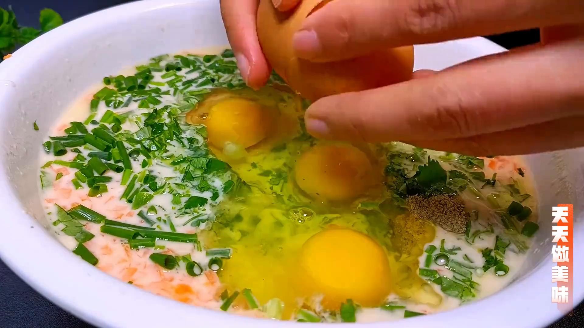 ·最后再准备一点香菜,切碎之后也放入面糊里,里面加点盐和胡椒粉调味。