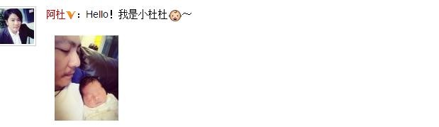 昨日,歌手阿杜晒出宝宝照片,并附文称:“Hello!我是小杜杜。”照片中小宝宝闭着眼睛,胖嘟嘟十分可爱。