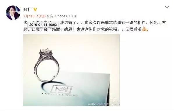 2016年1月11日,阿杜宣布两人的结婚喜讯:“这一天终于来了,我结婚了。这么久以来非常感谢她一路的相伴、付出、容忍,让我学会了感谢、感恩!也谢谢你们对我的祝福,无限感激”。
