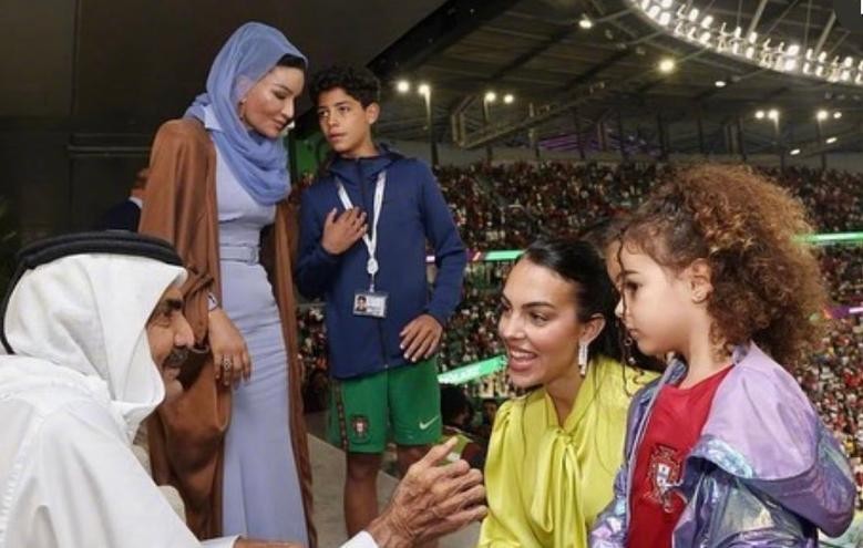 可以说,在卡塔尔世界杯期间,莫扎王后就是“国家形象”式的存在,除了在开幕式闪耀看台之后,多场焦点战她也现身VIP包厢,甚至还亲自问候了C罗的家人们,与乔治娜、迷你罗等人聊天、合影,丝毫没有皇室成员的架子。