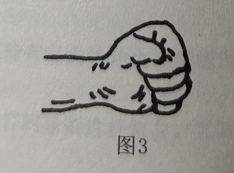 2.扣指拳,与四平拳略同,但大拇指末节扣入食指卷心里。好处:保护拇指和控制杀伤力(图3)。