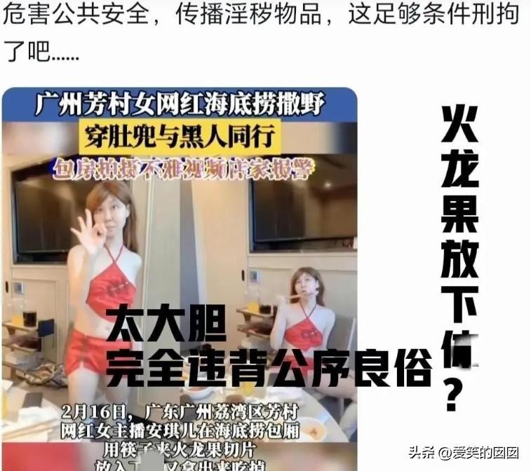 此前,就有网红在海底捞拍摄不雅照并上传网络,这种行为令人咋舌。然而,如今又有类似事件发生,一位名叫安琪儿的女主播,在海底捞的包厢内,穿着暴露,用餐具夹着火龙果做出不雅动作,并将这一过程拍摄成视频发布到网上,显然是为了吸引流量。