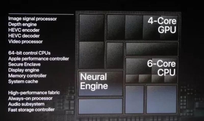 苹果A12处理器是2018年推出产品,其采用台积电7nm工艺 制造,集成了69亿个晶体管,采用自研的6核心CPU设计,其中2个Vortex性能核心+4个Tempest能效核心组成,其中性能核心频率2.49GHz,能效核心频率1.6GHz,GPU是自研的4核心GPU,