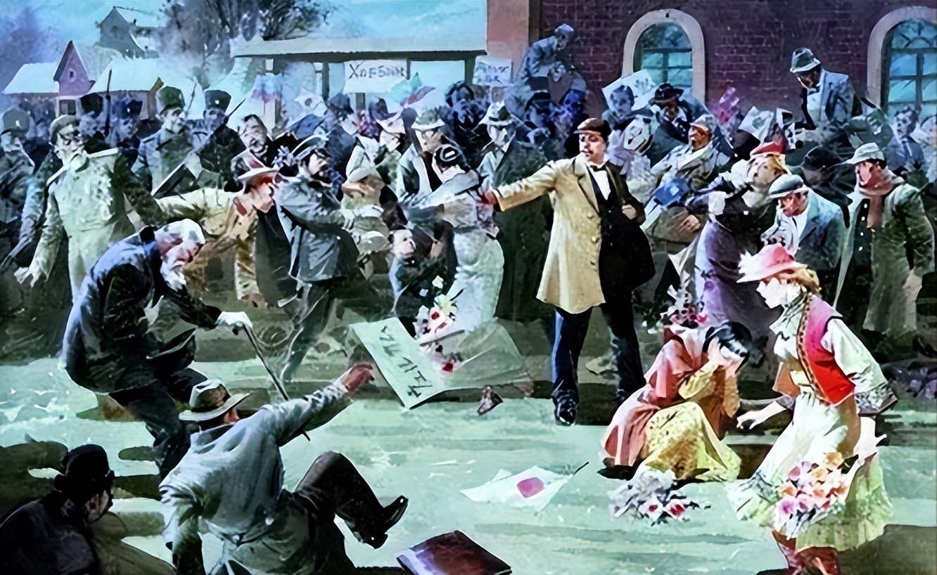 他下车笑着与俄国领导人握手寒暄,就在这时候,一名身穿灰色呢子大衣,头戴礼帽挡住脸庞的男人,突然从怀里掏出了手枪,气势汹汹朝伊藤博文走过去。