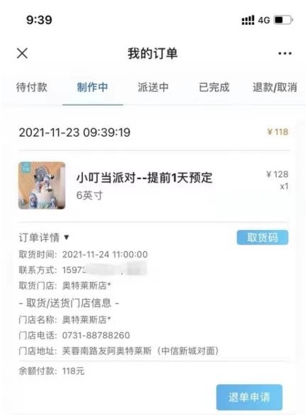 王女士表示,11月23日当晚7时食用蛋糕时就发现口感异常,当即拨打罗莎蛋糕奥特莱斯店的电话进行咨询,工作人员表示蛋糕是当天现做的。王女士提供了与工作人员当时的电话录音,录音中工作人员表示门店早上8点上班,但蛋糕外包装上的生产日期标签则显示蛋糕的生产时间为23号早上7点。