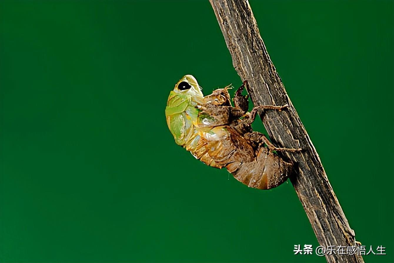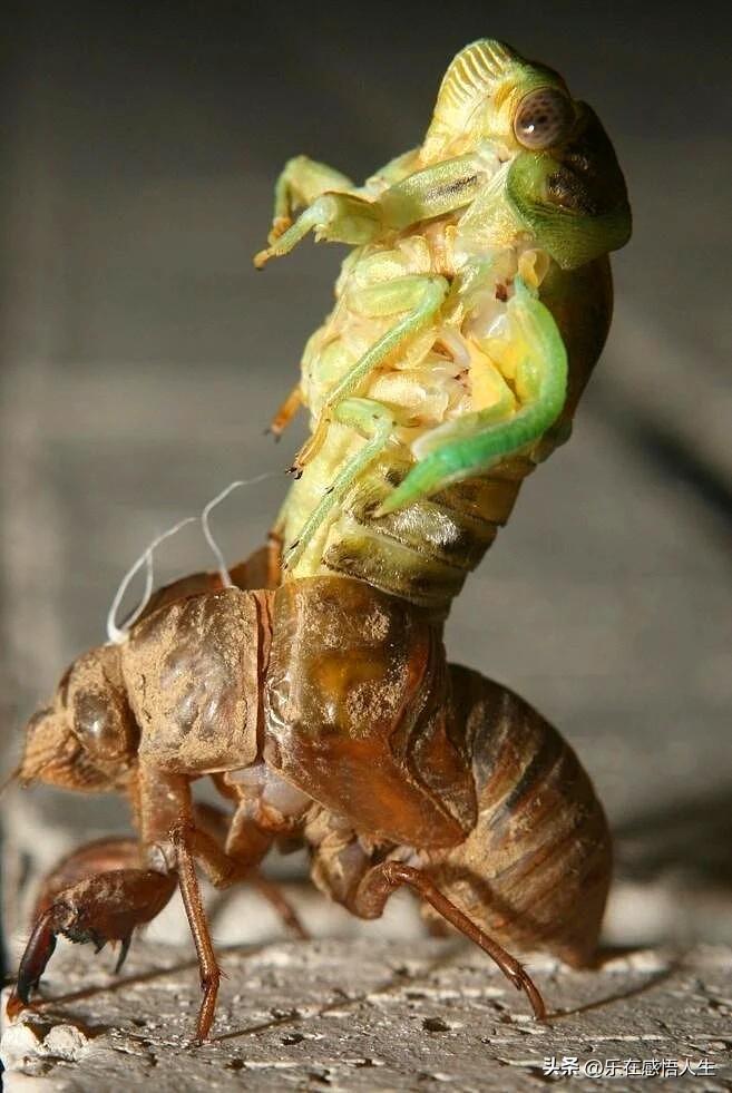 那些没有被人捉到的漏网之鱼,就会在树上完成脱胎换骨的蜕变,接着就可以展翅高飞,成为树荫里的音乐家,不知疲倦的谱曲歌唱整个夏天。这时它们便有了另一个称呼,知了或蝉。