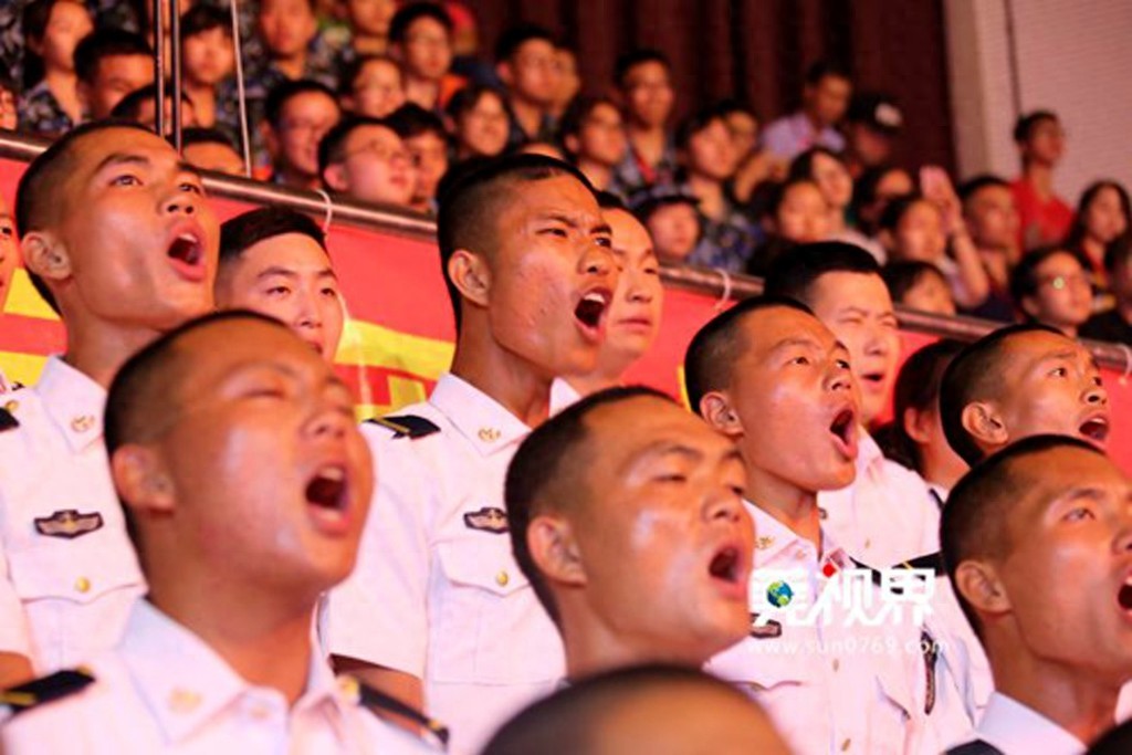 然后要学唱的是《人民海军向前进》,这个就约定俗成是海军军歌了。