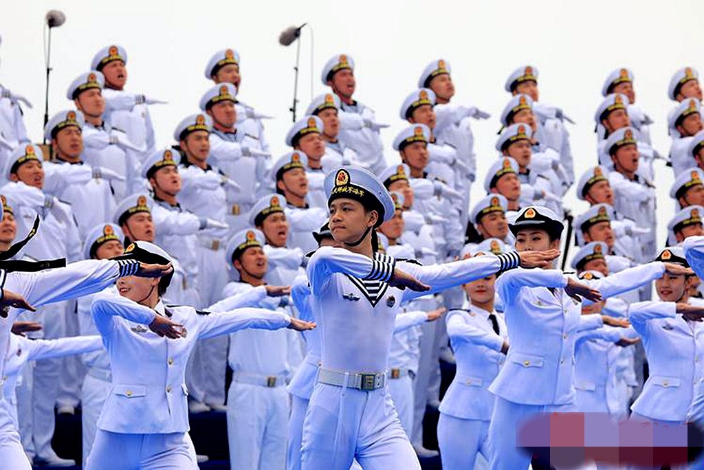 表演动作跟上面的海军男女兵《人民海军向前进》歌舞差不多,就是一些类似于打信号旗的动作,只是没有女兵参加,演出服就是水兵服加一双白手套。