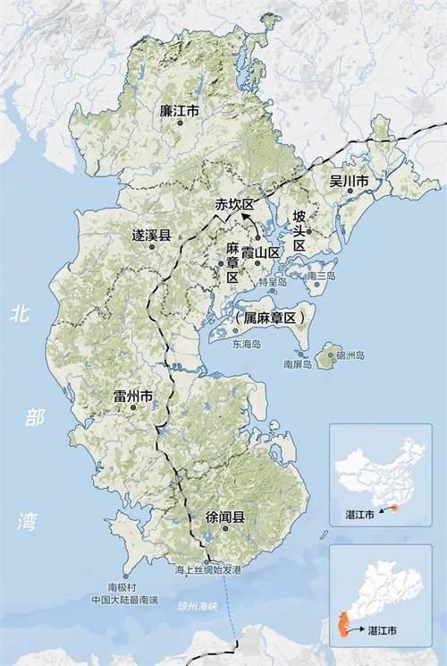 湛江,位于广东省西南部,是中国大陆最南端的地方,是中国首批沿海开放的港口城市,同时它也是一座美丽的海滨城市。湛江面积辽阔,包括整个雷州半岛及半岛北部的一部分,下辖4个市辖区、2个县,代管3个县级市,共有82个镇、2个乡、37个街道、307个居委会、1636个村委会,而湛江的市政府位于赤坎区,辖区总面积为13263平方公里。2021年,湛江市入围“中国最具幸福感城市”百强。